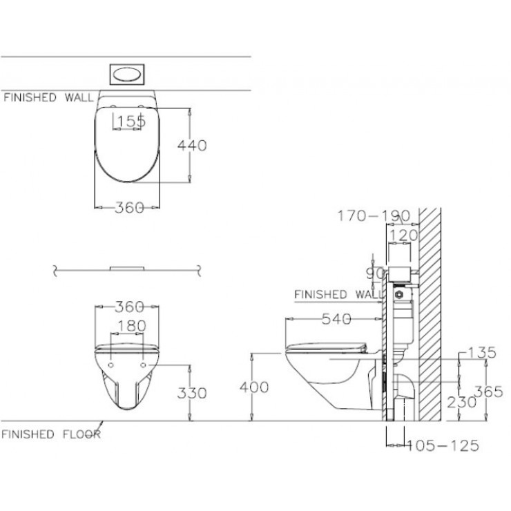 - Bao gồm két nước âm tường (C962172) và nút nhấn xả mặt trên (C942070)