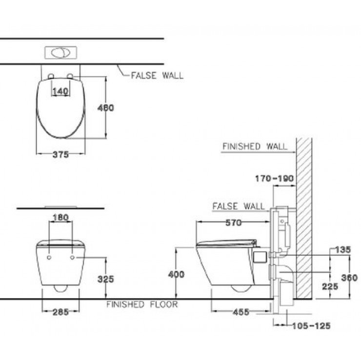 - Bao gồm: Khung két nước âm tường (C962170), nút nhấn xả mặt trên