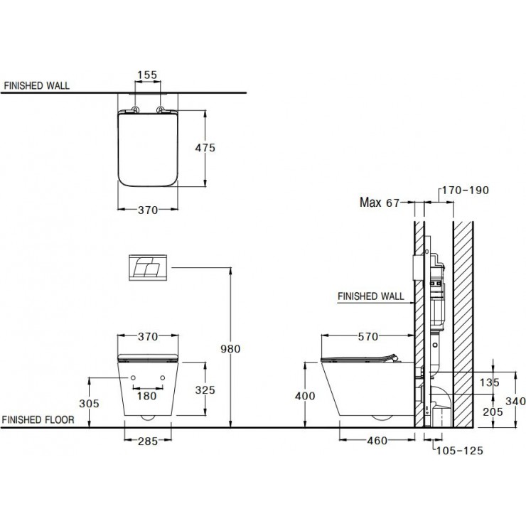 - Bao gồm: Khung két nước âm tường (C962100), nút nhấn xả mặt trước