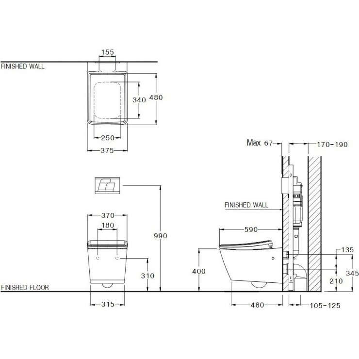 - Bao gồm: Khung két nước âm tường (C962100), nút nhấn xả