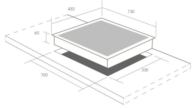 - Kích thước khoét đá: 700x330mm