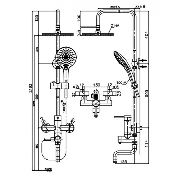 - Bao gồm: Đầu sen phun mưa và tay sen 3 chức năng