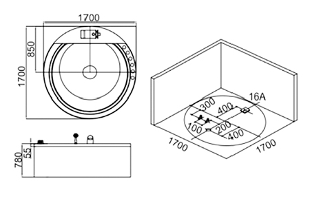 1550 x 1550 x 680 mm 1700 x 1700 x 830 mm |